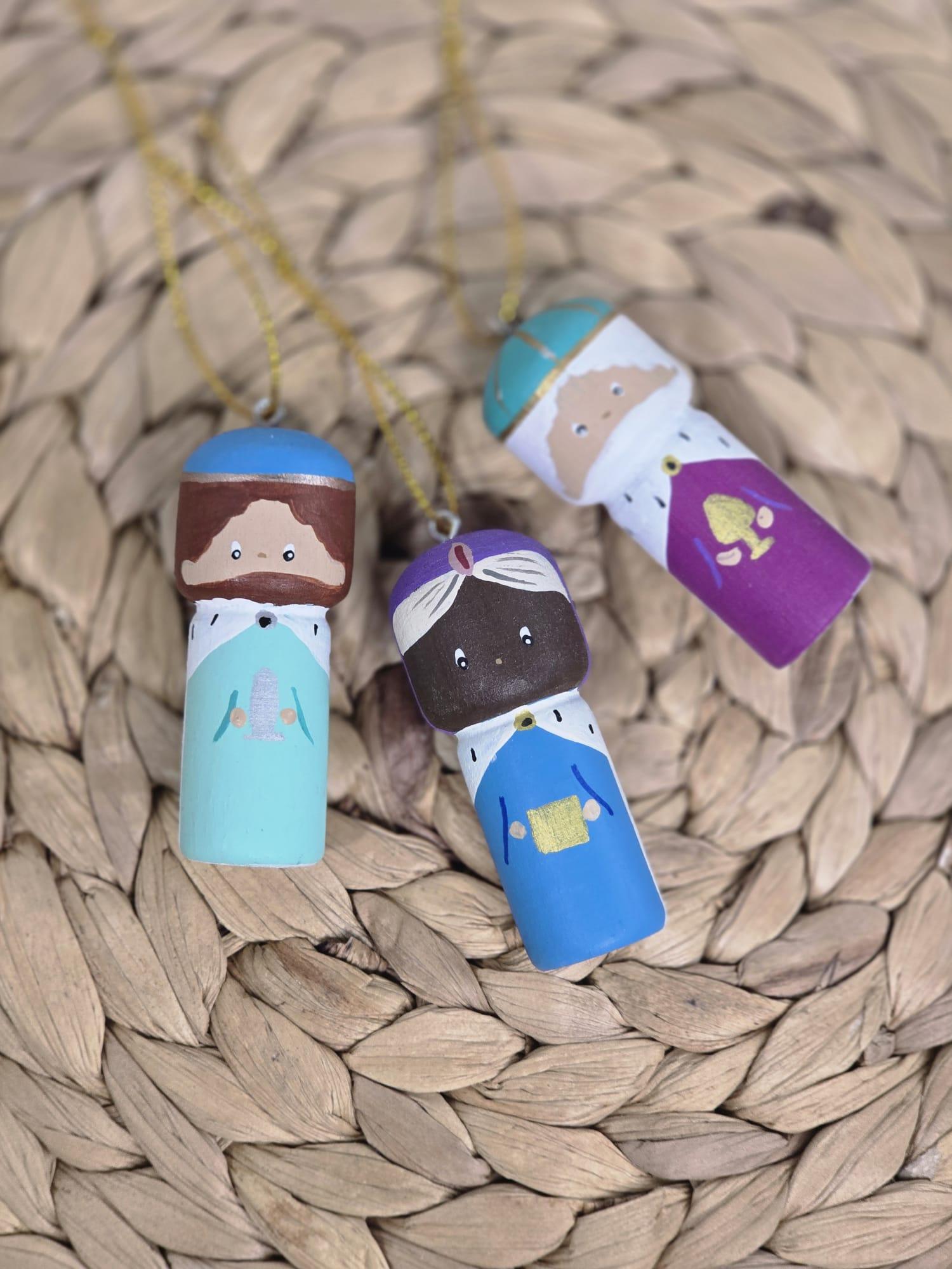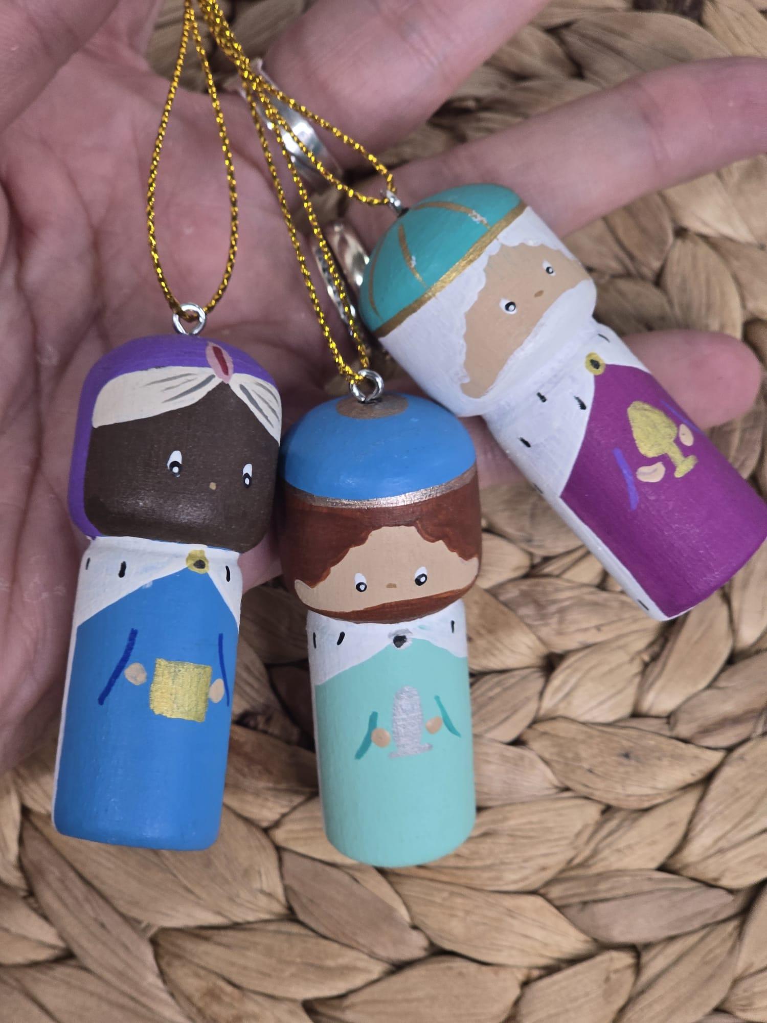 Adornos navideños en madera torneada pintada a mano