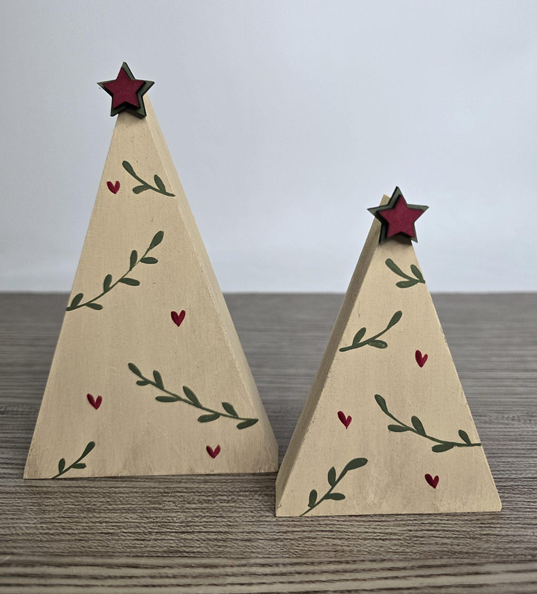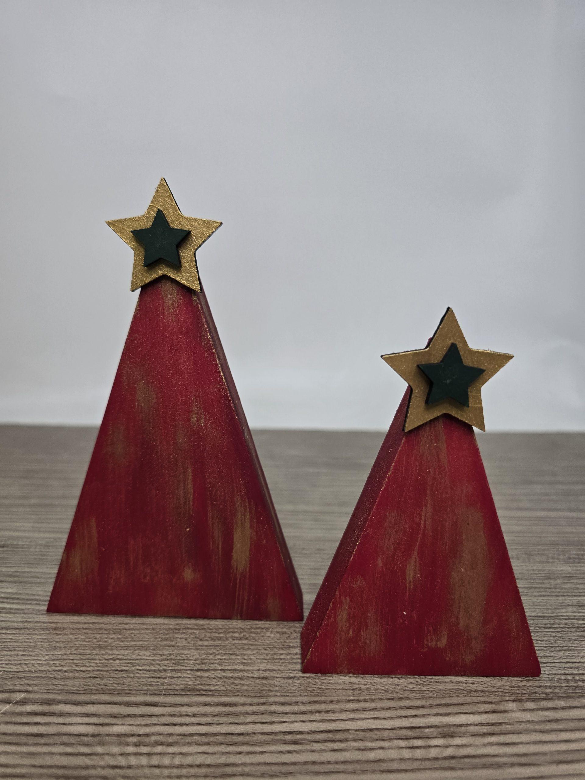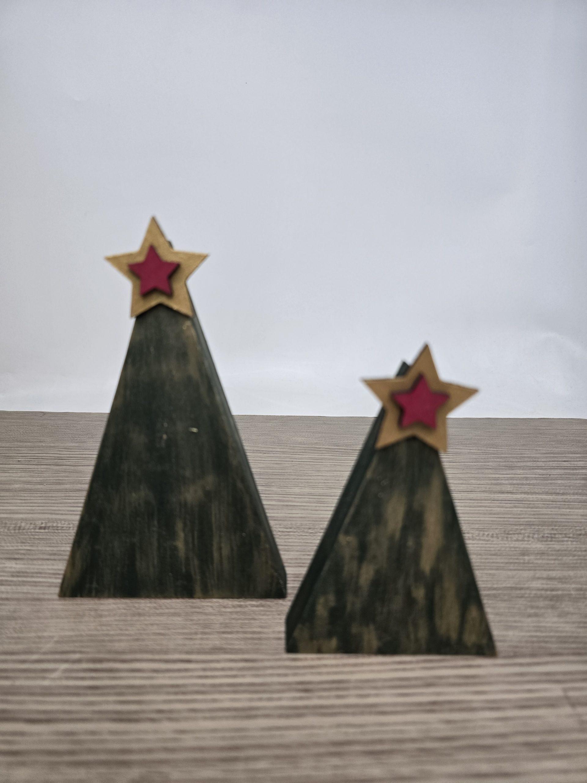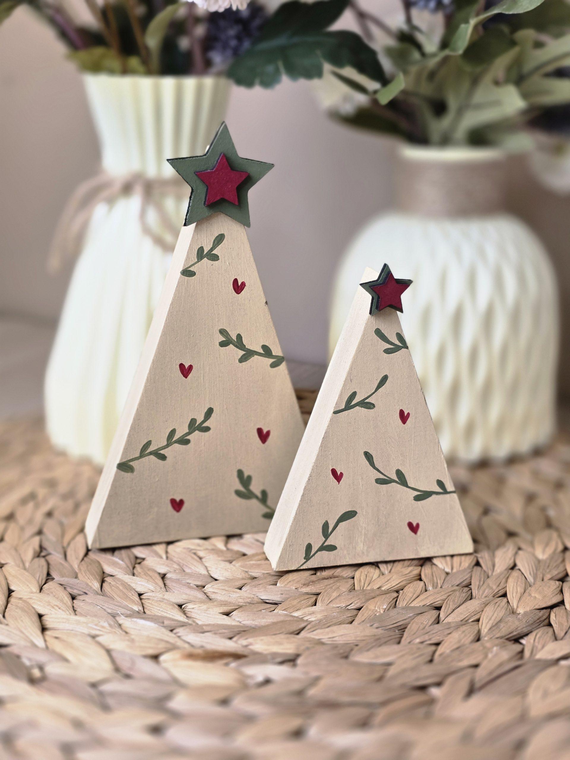 Árboles en madera de pino en dos tamaños y pintados a mano