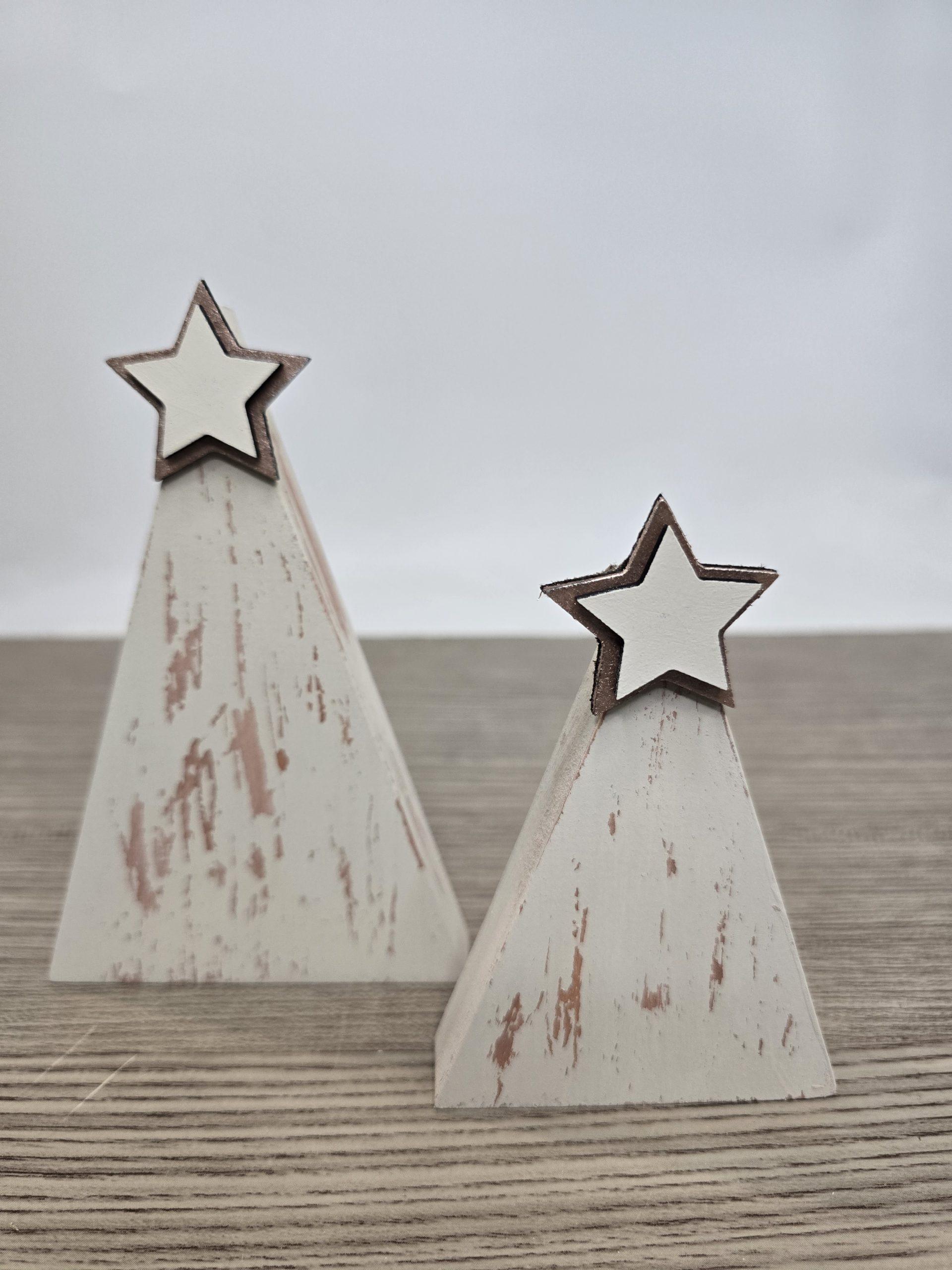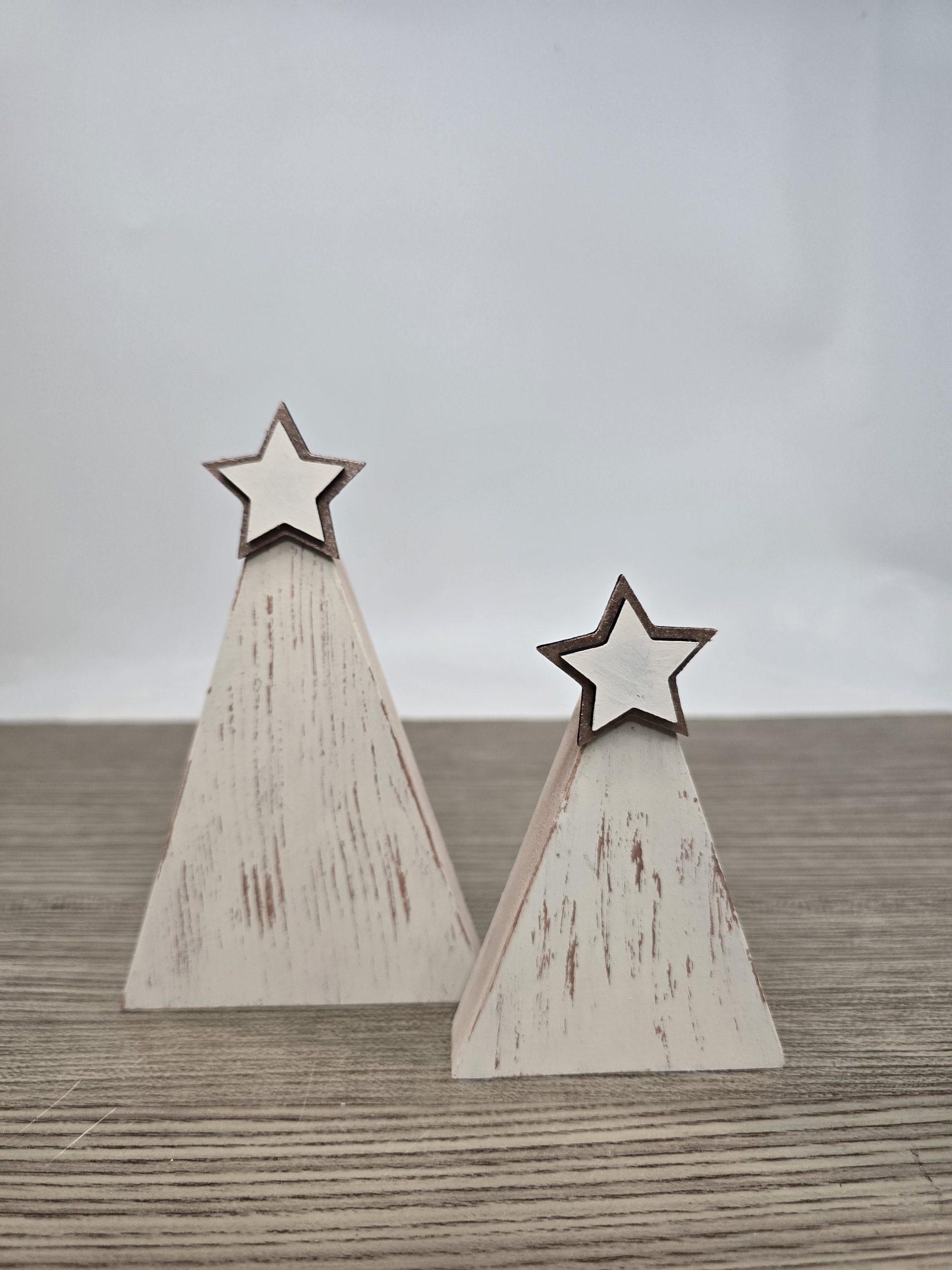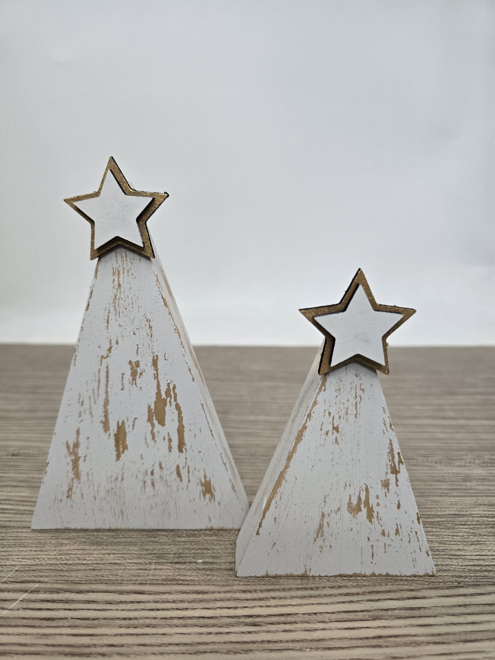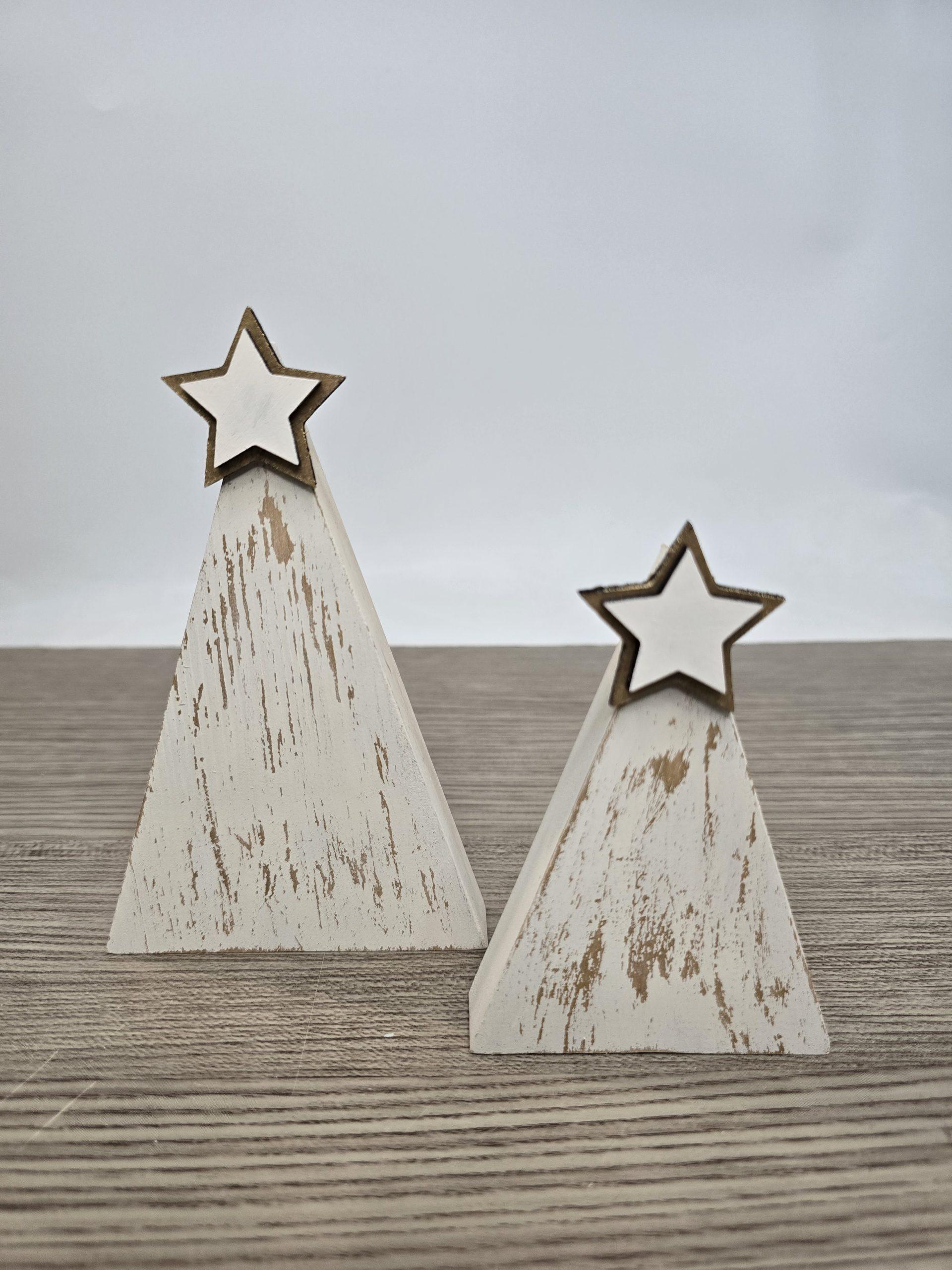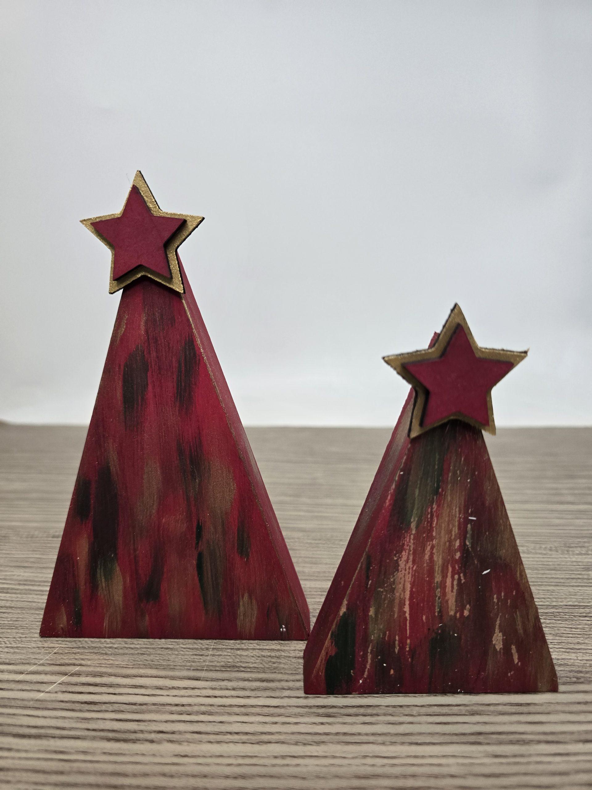 Árboles en madera de pino en dos tamaños y pintados a mano