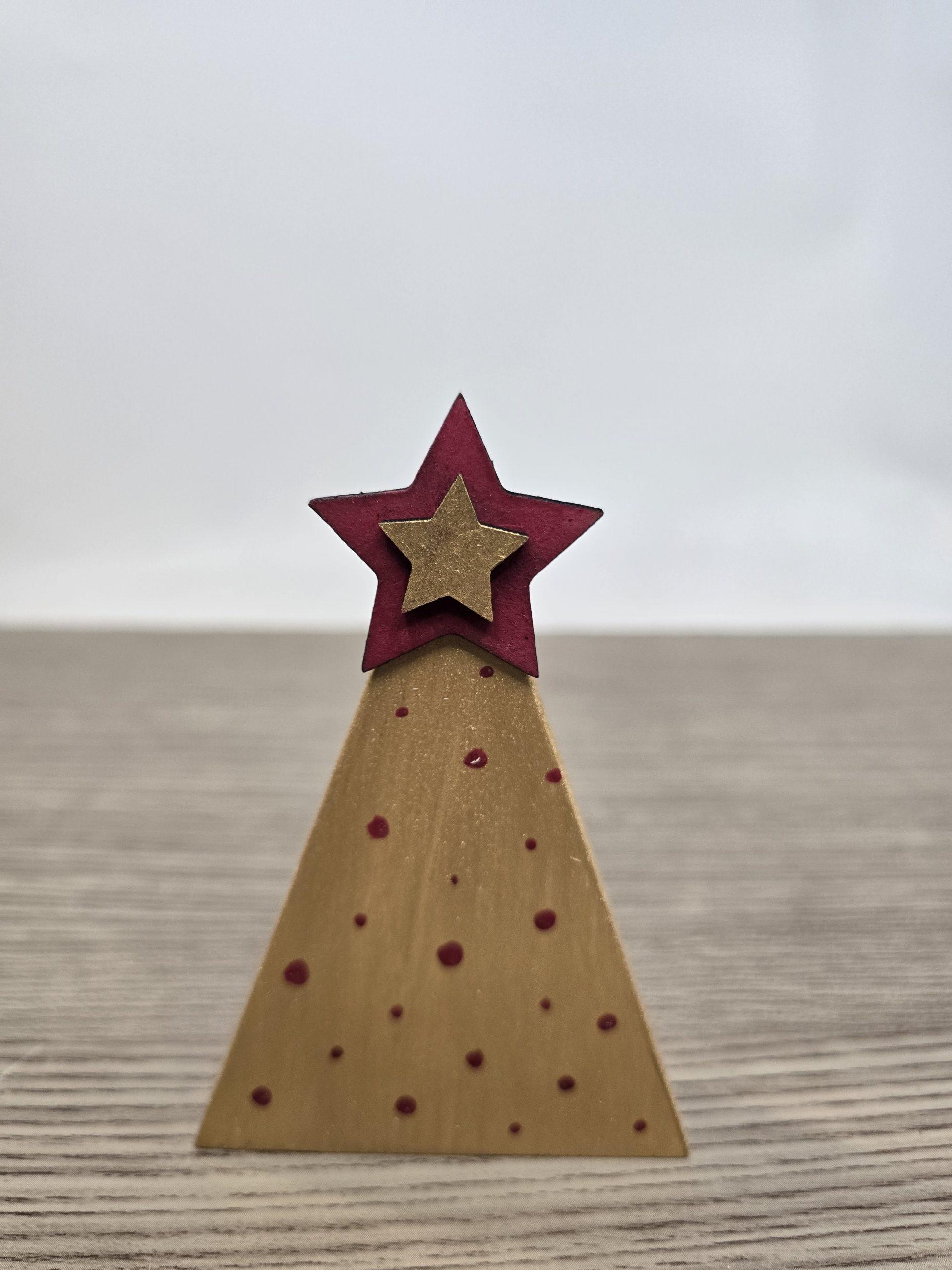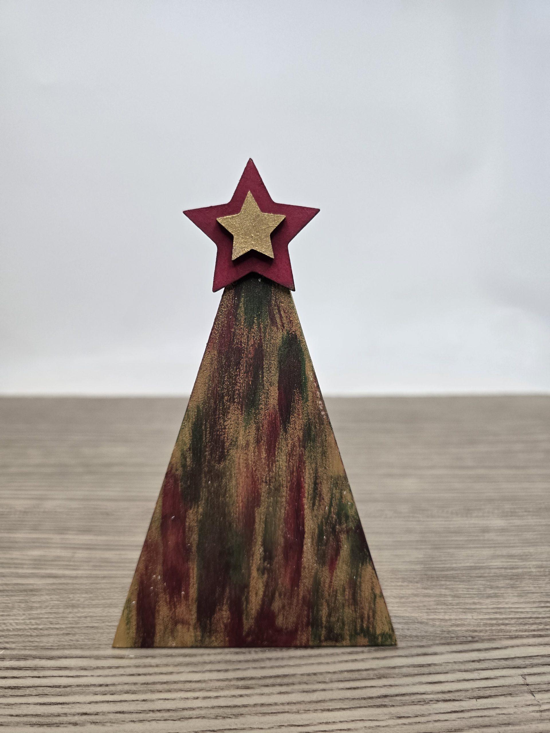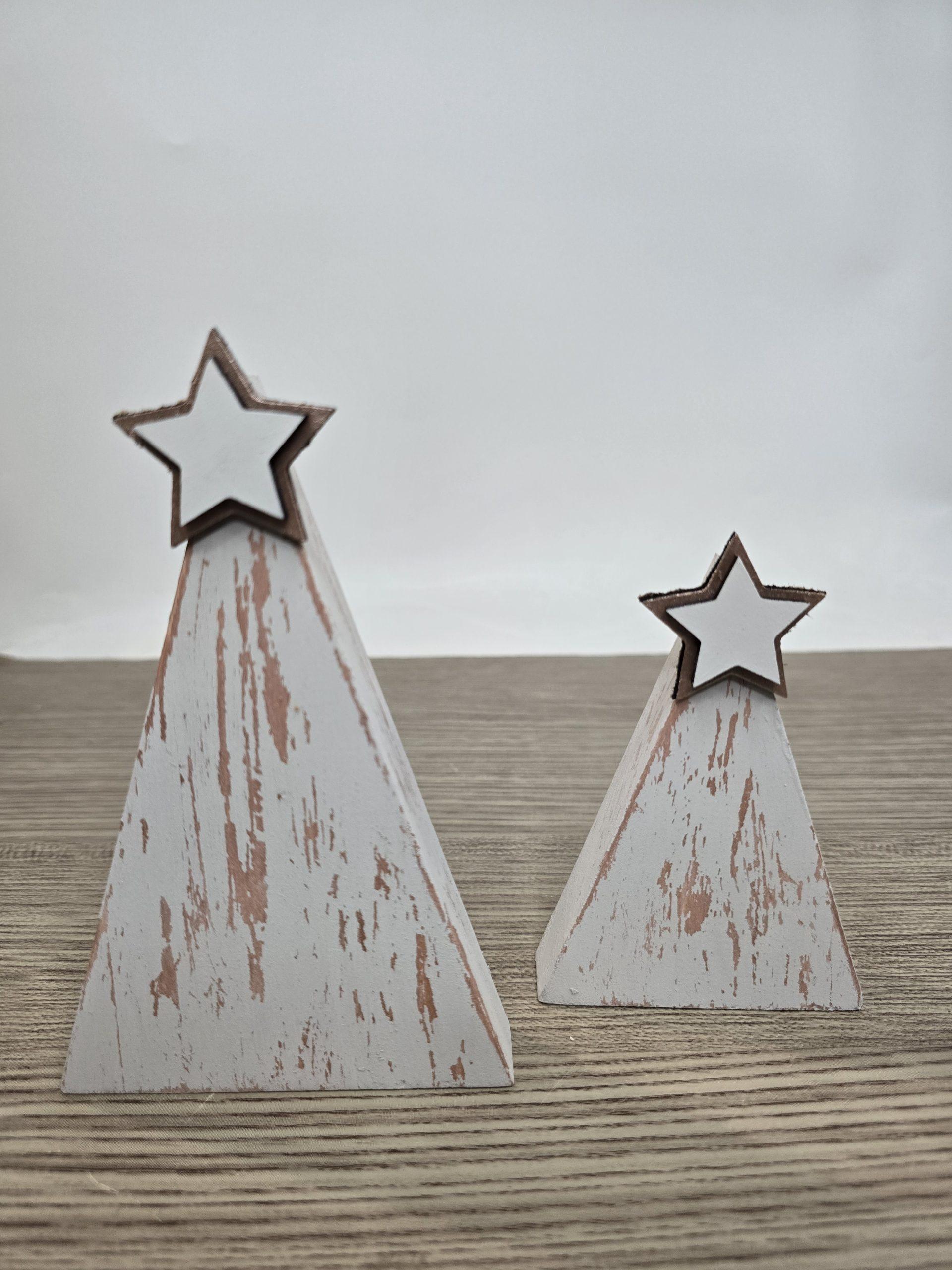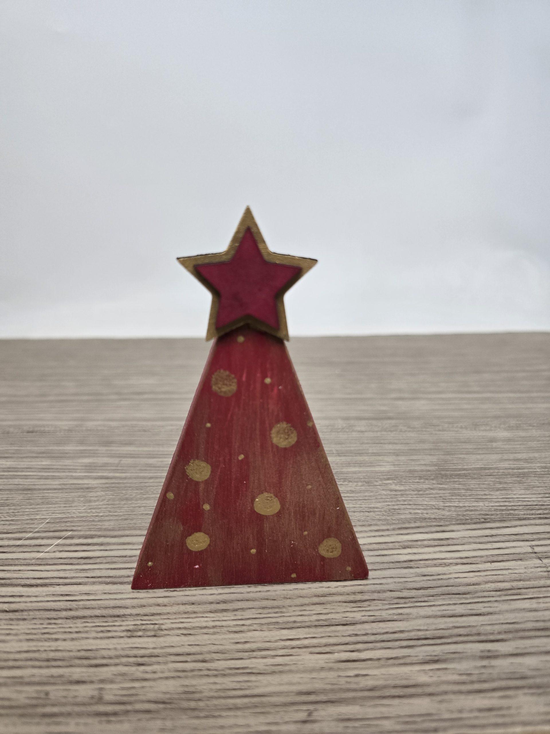 Árboles en madera de pino en dos tamaños y pintados a mano