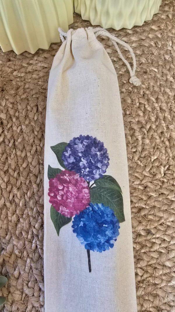 Protege y transporta tu abanico gracias a la funda de abanico fabricada en algodón de 150 gr/m² con cierre de cuerdas.