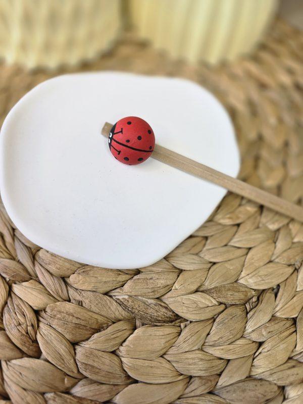 Lápices de madera con figura de mariquita en la parte superior.