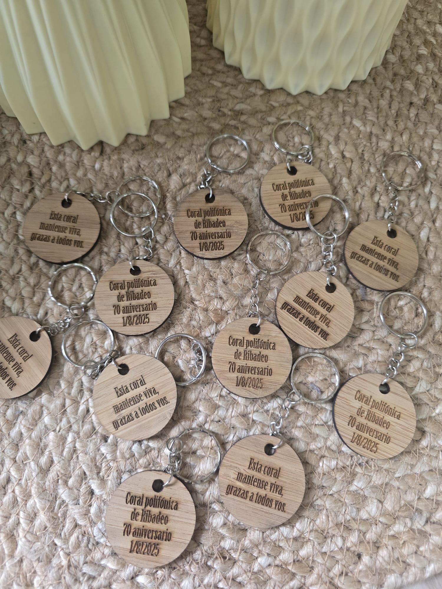Llaveros personalizados con formas y grabación láser.