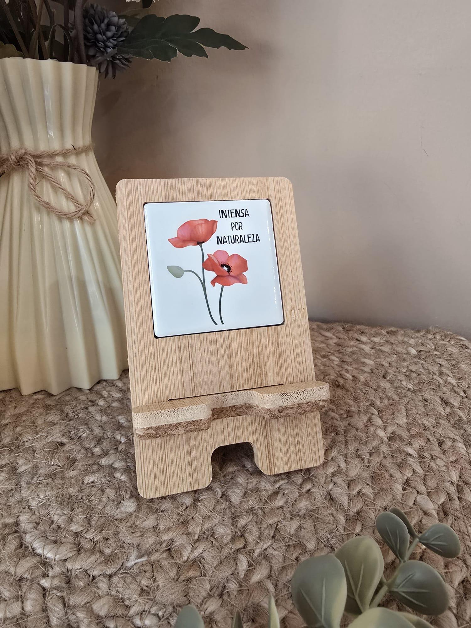Portamóvil de bambú, corcho y cerámica .