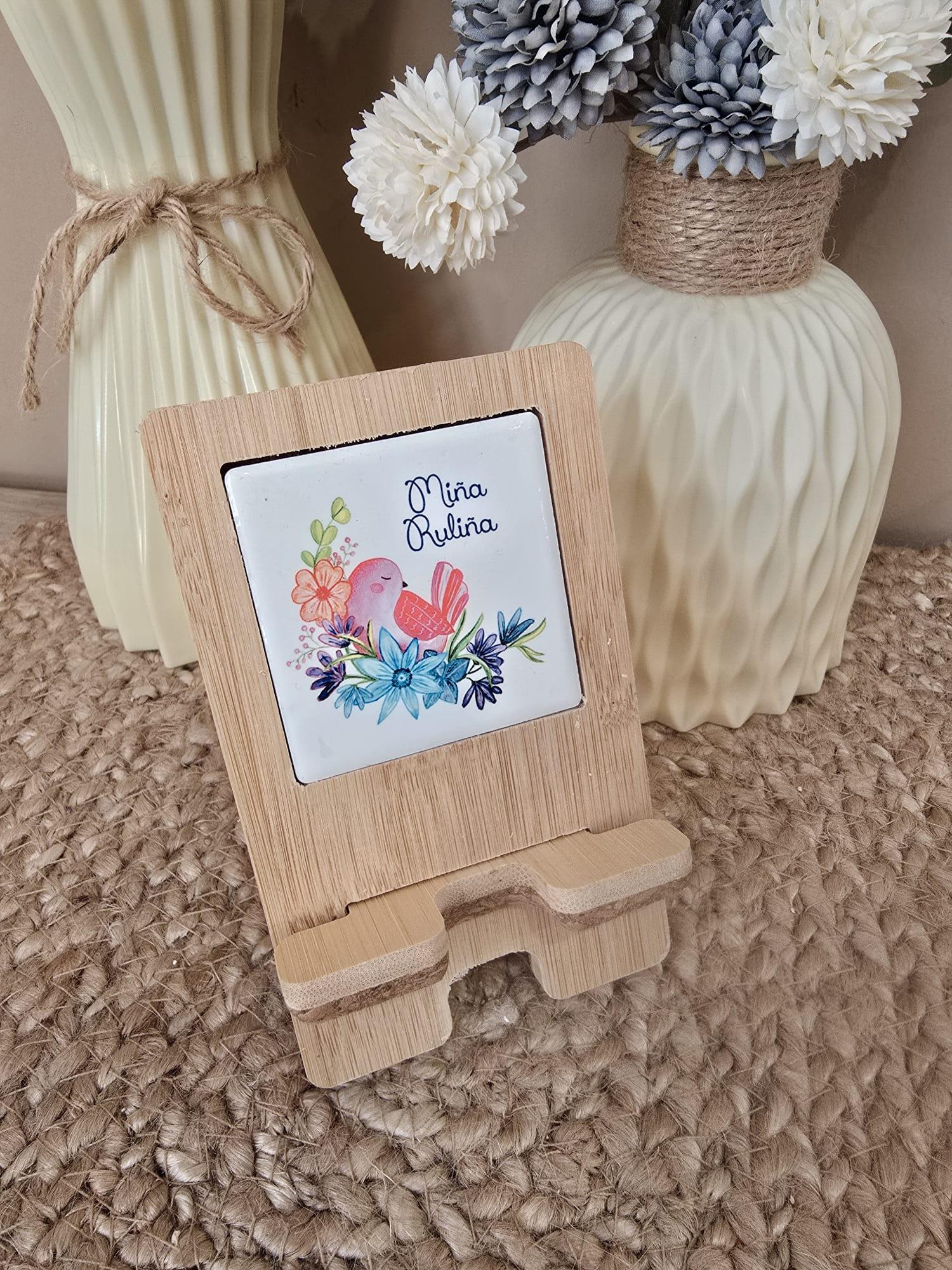 Portamóvil de bambú, corcho y cerámica .
