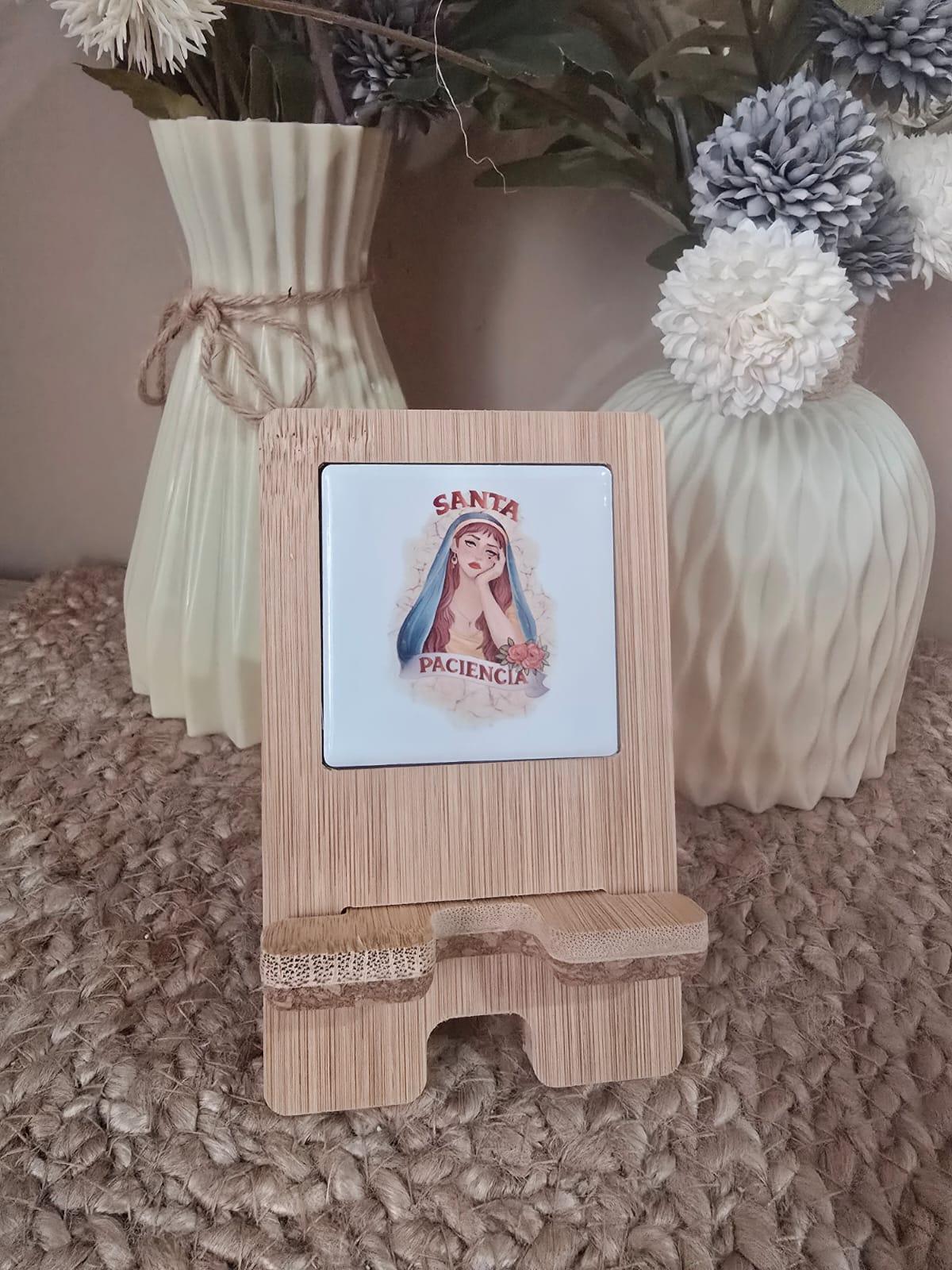 Portamóvil de bambú, corcho y cerámica .