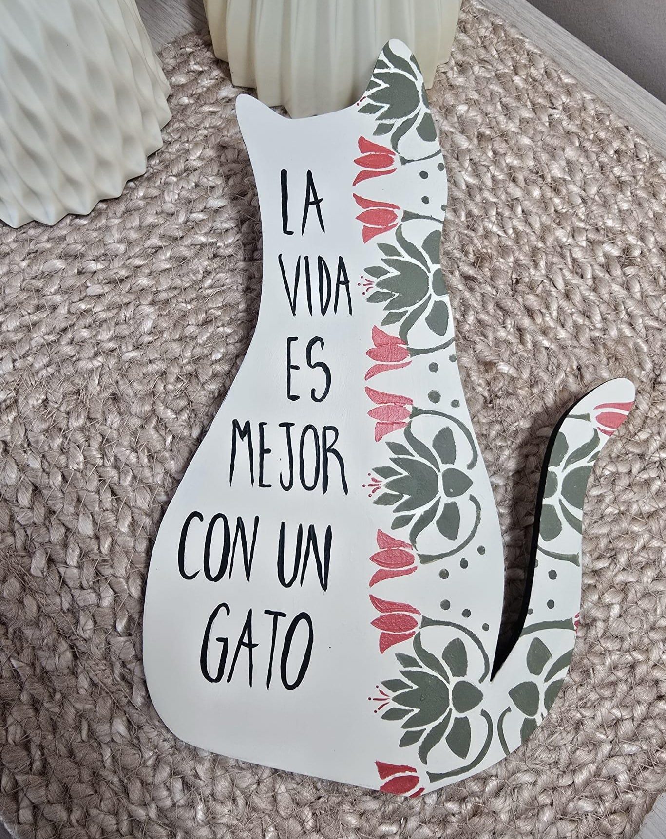 Es una opción perfecta como regalo original para amantes de los gatos, ya que no se trata de un objeto industrial, sino de una creación artesanal con identidad propia. Al estar pintada a mano, cada silueta tiene matices, pinceladas y acabados que la hacen verdaderamente especial.