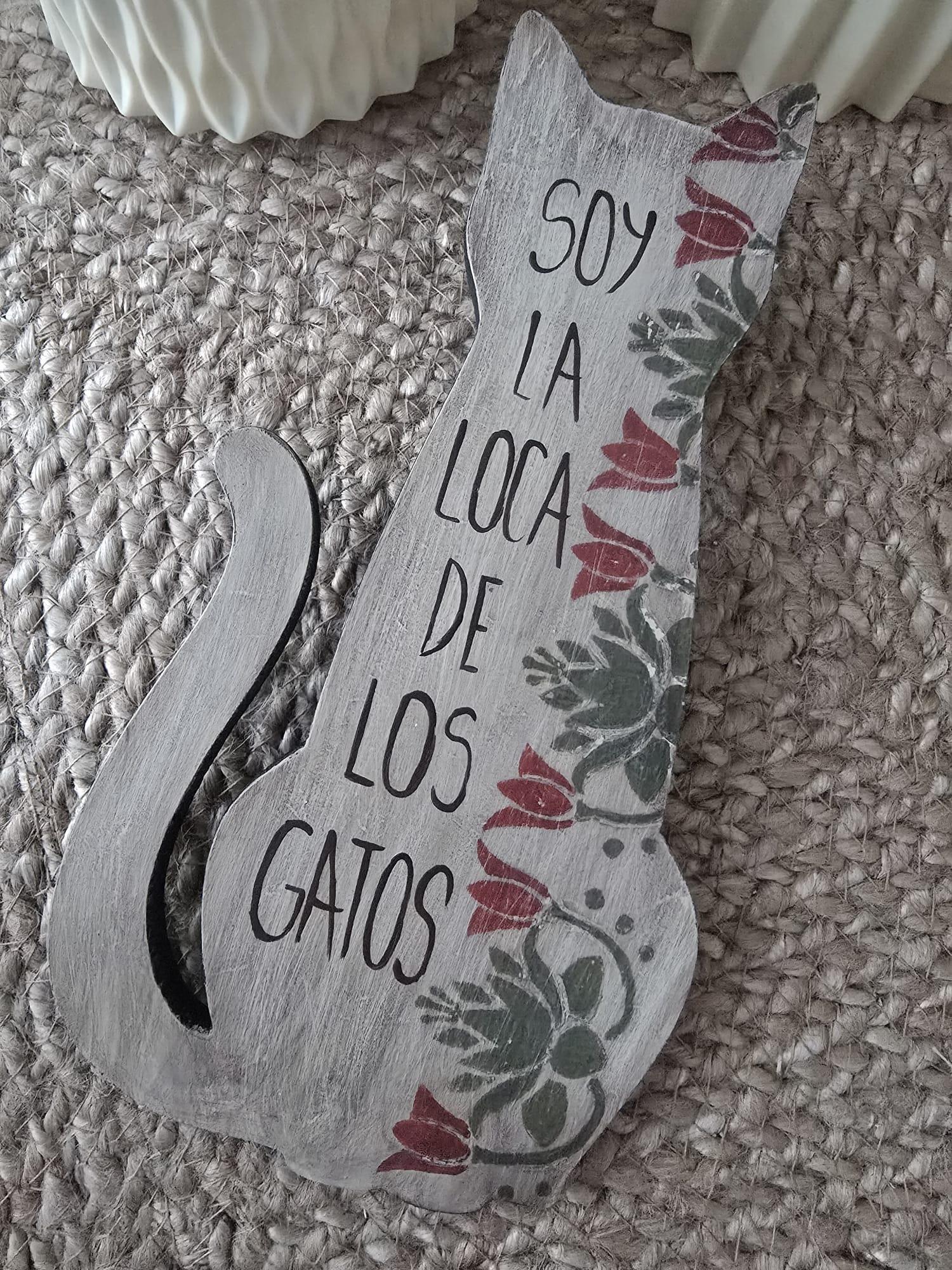 Es una opción perfecta como regalo original para amantes de los gatos, ya que no se trata de un objeto industrial, sino de una creación artesanal con identidad propia. Al estar pintada a mano, cada silueta tiene matices, pinceladas y acabados que la hacen verdaderamente especial.