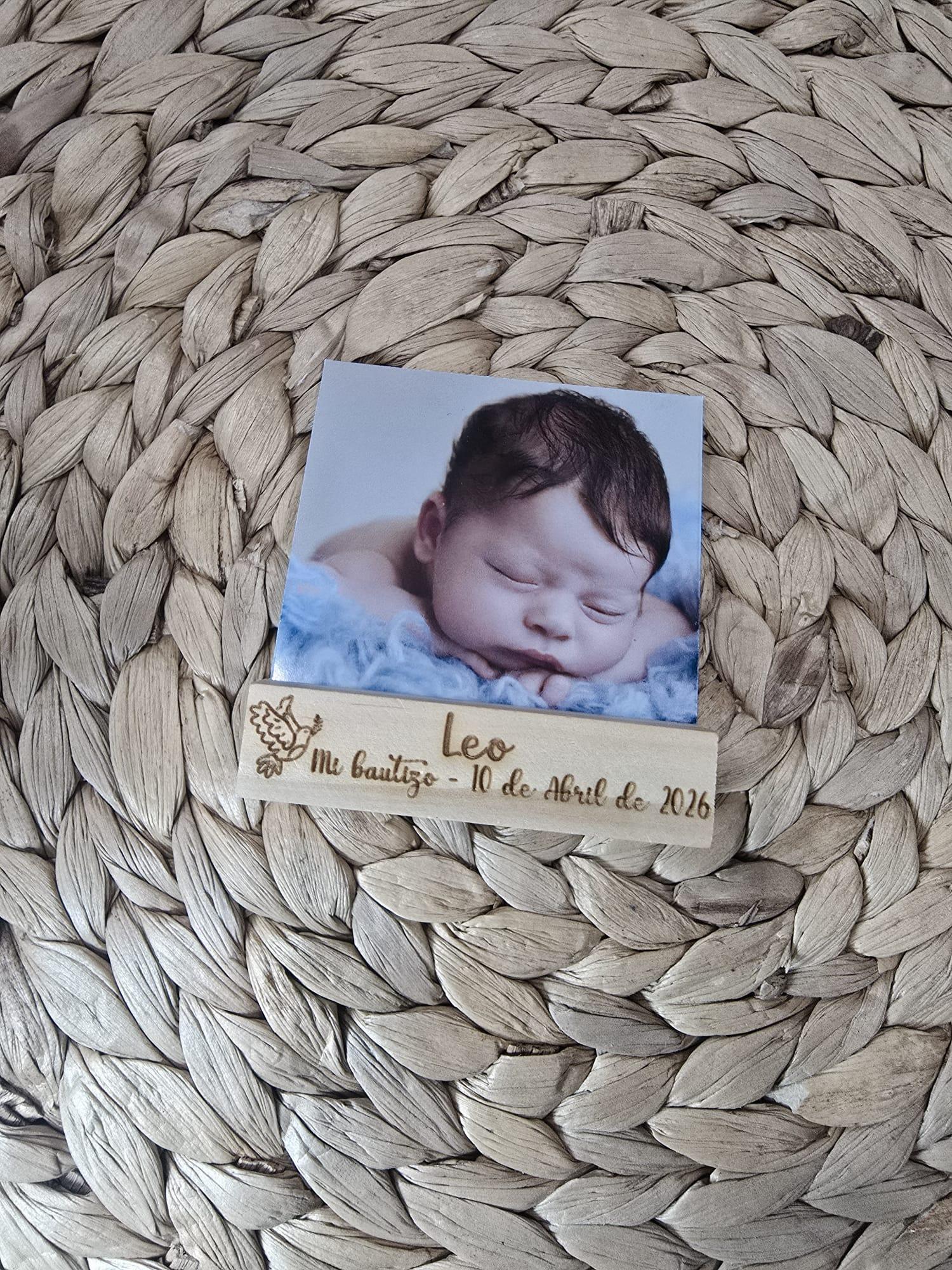 Soporte de madera para foto con grabación láser para eventos